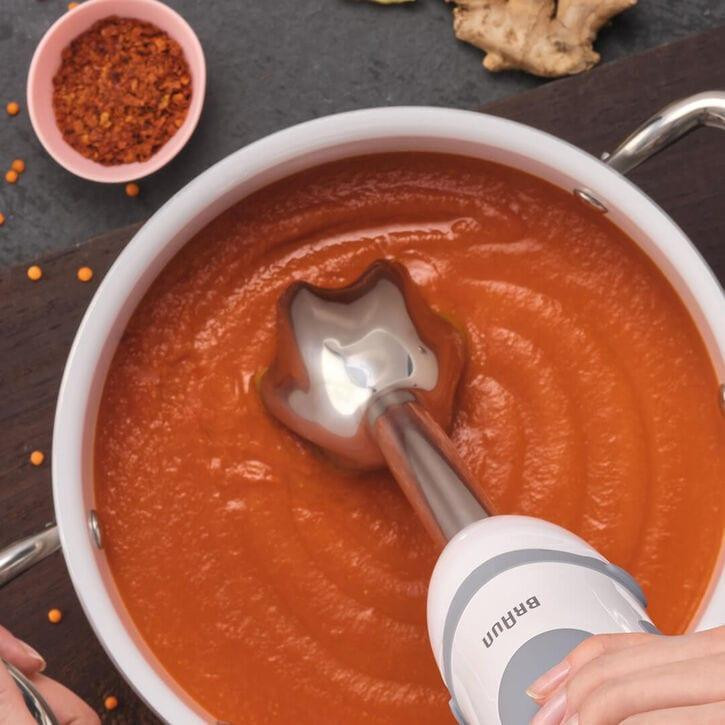 این گوشت کوب براون مدل MQ5200 یک محصول تک کاره پر کاربرد هست و در کشور رومانی تولید میشود. لیوان پلاستیکی از دیگر اقلام همراه این گوشتکوب برقی است. قدرت واقعی این محصول 1000 وات هست که جنس هسته موتور آن از مس هست. یکی از ویژگیهای موتور این دستگاه، استفاده از موتور هسته مس هست که باعث میشود عمر کارکرد دستگاه اففزایش پیدا کند. قطعات این گوشت کوب براون MQ5200 به راحتی قابل جدا شدن هستند و شستشوی آن بسیار آسان هست. تعداد دور این محصول به صورت 21 دور هست و میتوان بنا به صلیقه خود تنظیم دور نمود و همچنین مجهز به سیستم توربو میباشد. جنس تیغه این محصول بسیار تیز و برنده هست و از جنس استیل ضد زنگ ساخته شده. حجم لیوان آن 600 میلی لیتر هست.