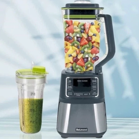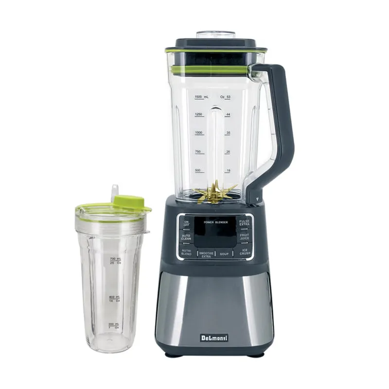 یکی از محصولات بسیار پرکاربرد در آشپزخانه است که از جمله کاربردهای آن می توان به آسیاب کردن مواد خشک و ترد، و تهیه بسیاری از نوشیدنیها به طور مثال انواع اسموتی ها، شیر موز، آب طالبی و سایر نوشیدنی های خوشمزه با میوه های یخ زده و مخلوط کردن و میکس کردن انواع میوه ها و سبزیجات و … اشاره کرد. این دستگاه Delmonti Blender 770 برای برش دادن و خرد کردن تقریبا هر نوع ماده غذایی مناسب است و دستگاهی چند منظوره است. دلمونتی نام این محصول را آسیاب مخلوط کن گذاشته چرا که علاوه بر مخلوط کردن و ریز کردن مواد غذایی مثل میوه و سبزیجات یک قسمت آسیاب هم برای خرد و ریز کردن مواد غذایی خشک مثل غلات و دانه های سخت اختصاص داده است. مشخصات آسیاب و مخلوط کن چند کاره دلمونتی مدل 770 (طرح جدید) جنس بدنه جنس مخلوط کن جنس مخلوط کن این آسیاب دلمونتی مدل 770 از شیشه پیرکس و شفاف بسیار مقاوم در برابر ضربه و افتادن است و بر خلاف پارچ های پلاستیکی هیچ گاه کدر نشده و شفافیت خود را از دست نمی دهد. از آن جهت که از نظر پزشکی ظروف شیشه ای سالم تر از ظروف پلاستیکی هستند جنس این پارچ مخلوط کن از شیشه پیرکس است. ظرفیت پارچ 1.75 لیتر تیغه های برنده و تیز مخلوط کن دلمونتی مدل 770 دارای تیغه های بسیار برنده و تیز از جنس استیل ضد زنگ است. از نکات قابل توجه این تیغه ها دندانه دار بودن آنهاست که مناسب خرد کردن و زیر کردن یخ می باشند. با این دستگاه به راحتی می توان یخ را ریز و قطعه قطعه کرد. این تیغه های بسیار برنده، قادر به خرد کردن و ریز کردن سخت و سفت ترین مواد غذایی و یخ هستند. همچنین برای آسیاب کردن مواد خشک از جمله پودر کردن ادویه جات و غیره می توان از قسمت آسیاب آن استفاده کرد. توان مصرفی دستگاه Delmonti Blender 770 دارای توان مصرفی 1500 وات است که برای یک مخلوط کن قدرت بسیار مناسبی است و از قدرت کافی و لازم برخوردار است و قادر به خرد کردن و ریز کردن انواع مواد خشک، میوه و سبزیجات است. با ضمانت 18 ماهه ساخت ایران