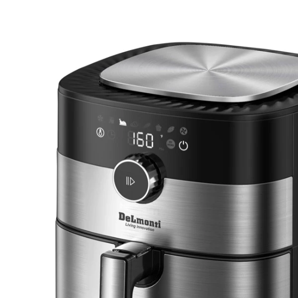 سرخ کن دلمونتی 820 دارای پنل تمام لمسی جهت انتخاب برنامه و تنظیمات مورد نظر بوده و همچنین دارای یک دکمه ولومی جهت تنظیم حرارت نیز می باشد. نور بکارگرفته شده در اطراف ولوم زیبایی این سرخ کن را دوچندان می کند. فیلتر خروجی بکار گرفته شده در سرخ کن مانع خروج بو و چربی شده و از انتشار بو، دود و چربی در آشپزخانه جلوگیری می کند.
