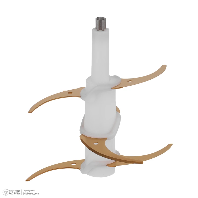 تیغه تعبیه شده برای این خردکن از نوع تیتانیومی بسیار تیز و با دوام ساخته شده است. این تیغه با داشتن 6 پره می تواند انواع مواد غذایی شامل سبزیجات ، سیب زمینی ، پیاز و سیر ، هویچ و کرفس ، مواد پروتئینی و سایر مواد غذایی را به راحتی و در کمترین زمان خرد کند.